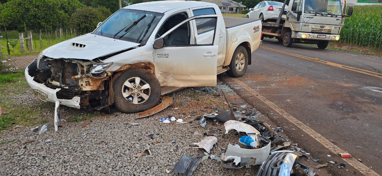 Acidente no trevo de acesso à Tapera deixa três pessoas feridas na tarde desta sexta-feira