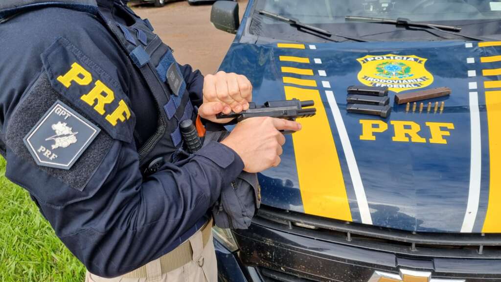 Na manhã desta quarta-feira (19), na BR 386, a Polícia Rodoviária Federal prendeu uma mulher transportando uma pistola dentro de uma sacola. Ela viajava em um ônibus.