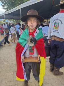 1º Lugar Laço Individual Guria – Ana Manuela Carvalho – CTG Potreiro Grande – Salto do Jacuí. Ela em Irati/PR, 2024, já tinha conquistado o título de Campeã Laço Seleção Prenda Mirim e Vice-campeã no Laço Dupla e Campeã Individual Prenda Mirim, repetindo esse ano como Prenda Juvenil.