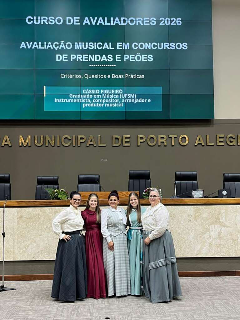Em Porto Alegre, a coordenadora da 14ª Luciana Parizoto, acompanhada pela Diretora de Cultura Denise dos Santos, Eduarda e Emily dos Santos, e também Carla Dierings Penz, participaram do Encontro de Avaliadores realizado no dia 07 de março, de forma paralela ao Seminário Estadual de Prendas.