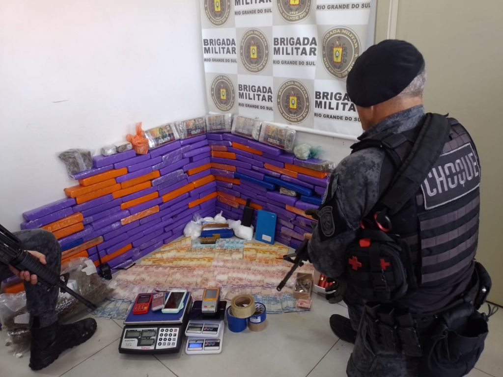 Cerca de 150 de tabletes de maconha, uma grande quantidade de cocaína, skunk, haxixe, pretrechos para o tráfico, munições e dinheiro em espécie foram localizados na residência. A Uirapuru acompanha a ocorrência que está em andamento.