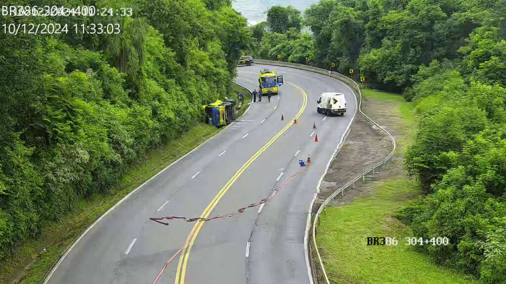 Na manhã desta terça-feira (10), um acidente de trânsito provocou a interdição completa da BR-386, em Pouso Novo. Segundo informações preliminares, uma carreta carregada com combustível tombou nas proximidades do km 304 da rodovia.