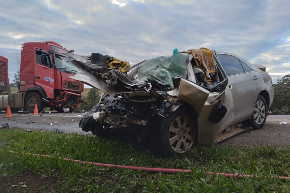 Segundo testemunhas, houve uma colisão frontal entre uma carreta e um Toyota Camry.