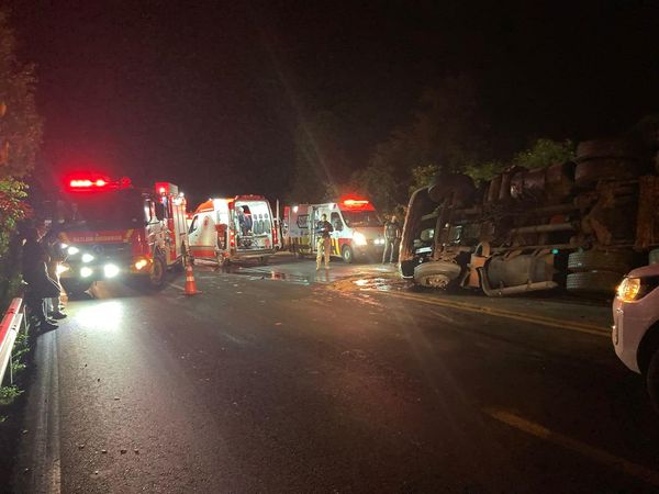 O passageiro do caminhão Volvo, em óbito, estava embaixo de partes do baú da carreta. Em razão do estado desta vítima, não foi possível identificação. O corpo foi removido para necropsia no Departamento Médico-Legal (DML) de Lajeado.