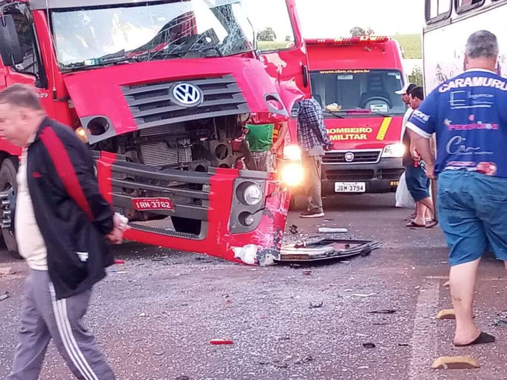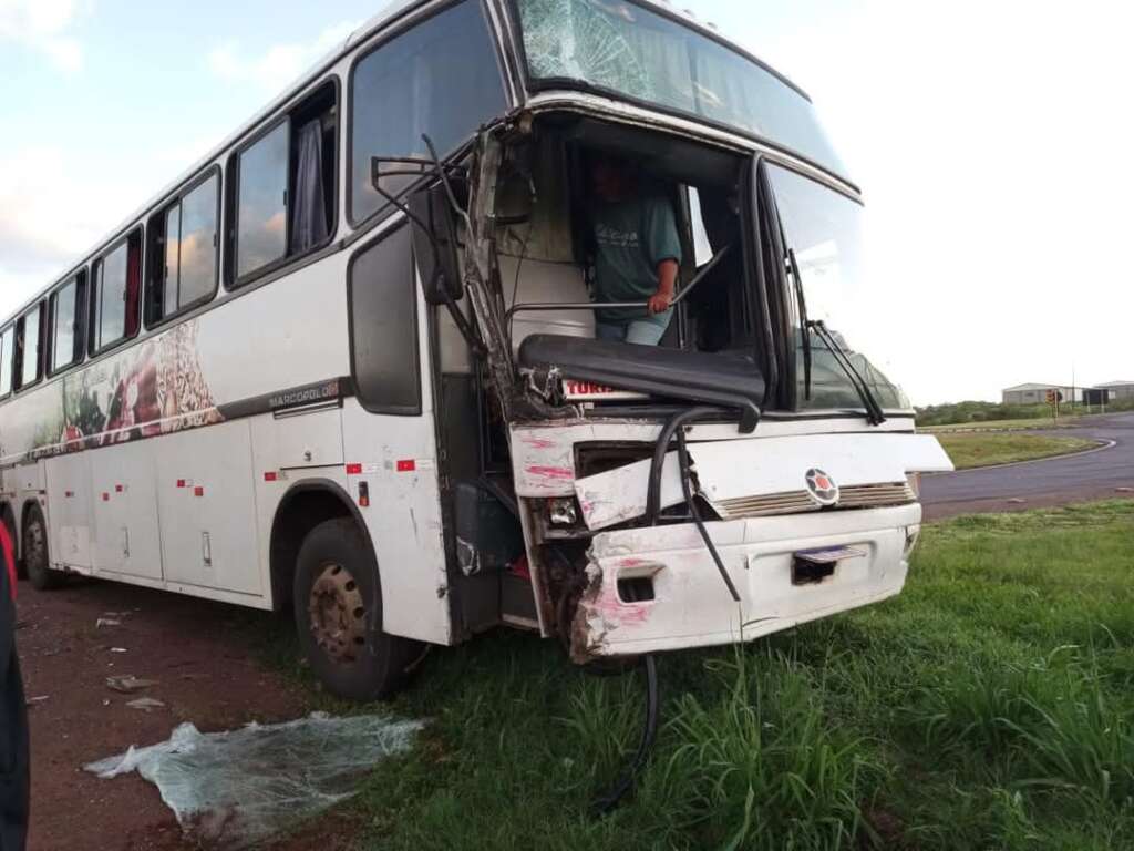 Colisão entre ônibus e caminhão no entroncamento da BR 158 com a BR 468 na manhã deste domingo deixa feridos.