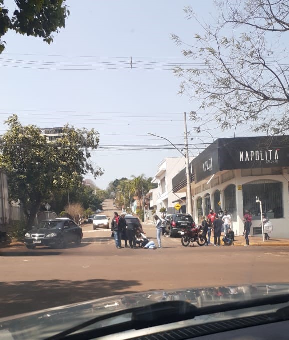 A ocorrência envolveu um veículo Ford Fiesta preto e uma motocicleta.