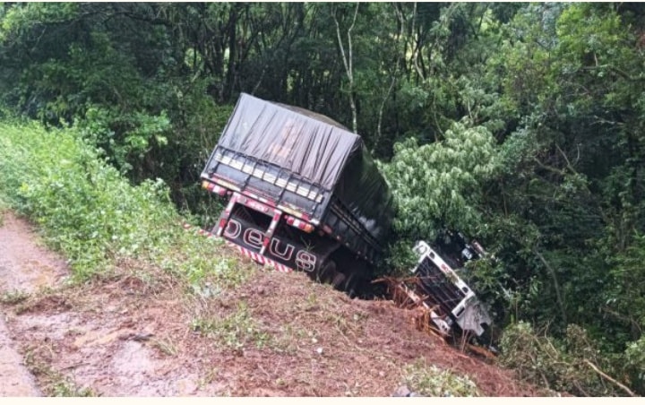 Uma carreta Scania com placas de Veranópolis estava transitando vazia no sentido Passo Fundo/Ernestina. Ao se deparar com um pardal, o condutor freou e a carreta trancou, e caiu um barranco de aproximadamente 20m, derrubando diversas árvores.