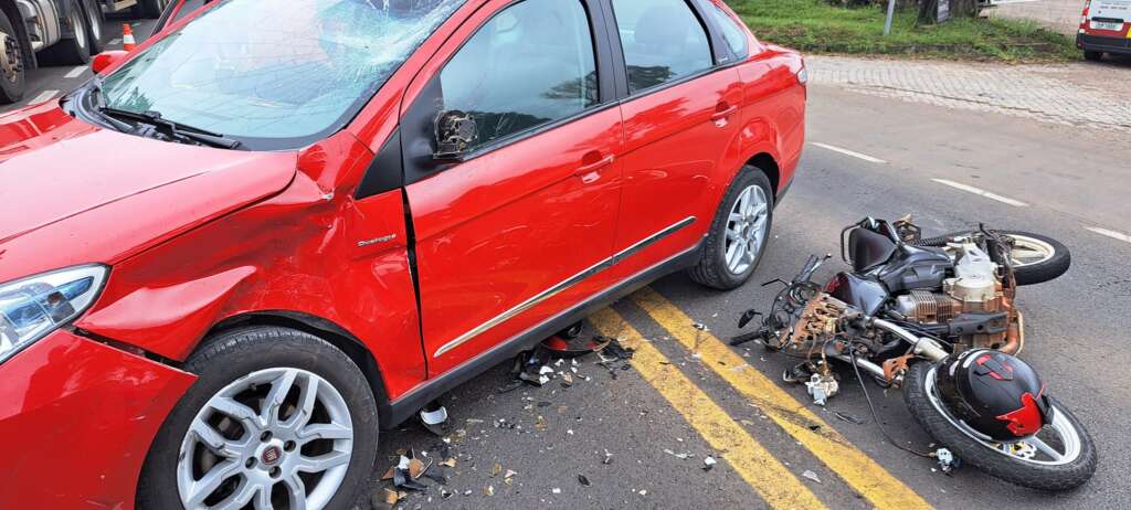 Pelas informações, um Fiat Siena, com placas de Garibaldi, fez a conversão com sentido a Barros Cassal, e foi surpreendido por uma moto Titan 150, com placa de Arroio do Meio, que trafegava no sentido capital-interior.