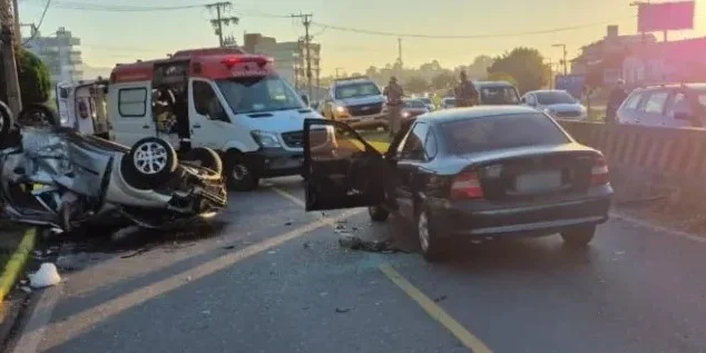 De acordo com a Brigada Militar, por volta das 6h, o motorista de um Chevrolet Corsa perdeu o controle e colidiu contra uma mureta de contenção. O veículo capotou e acabou atingindo um Vectra.