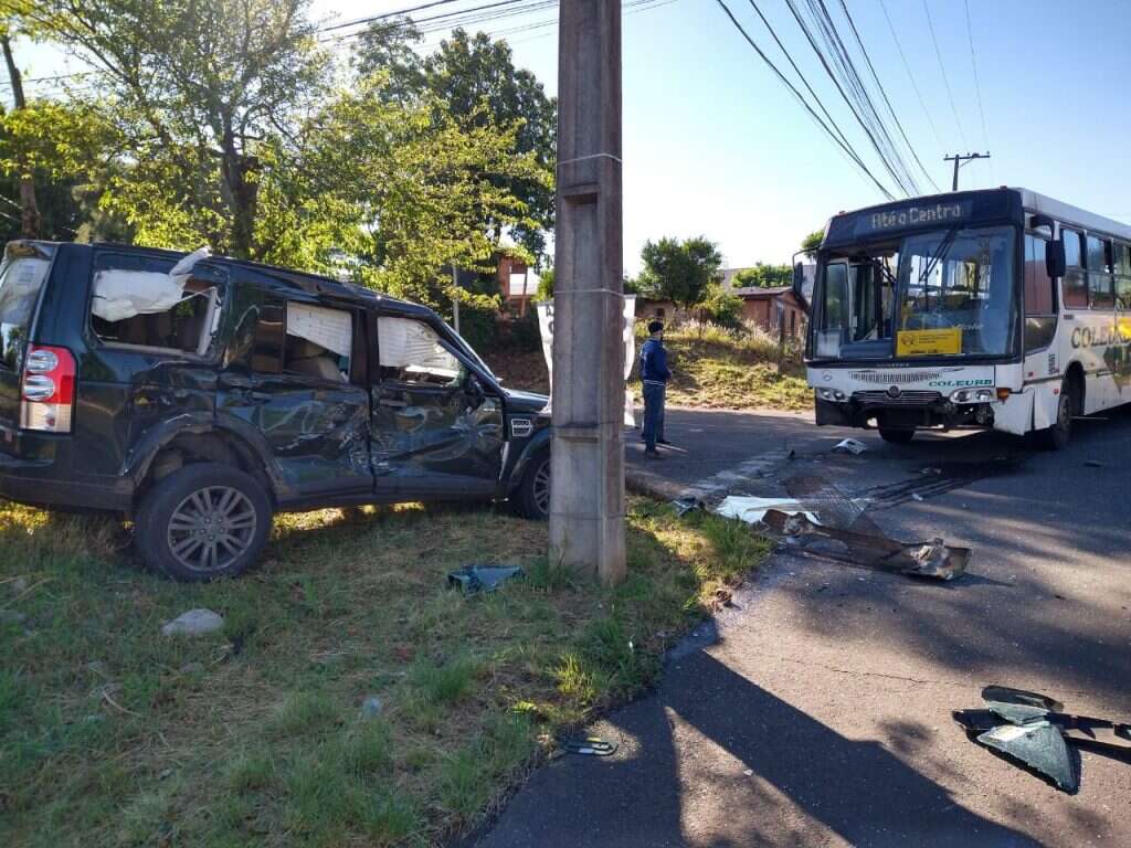 Na manhã desta quarta-feira (28), um grave acidente de trânsito envolvendo uma Land Rover e um ônibus, deixou uma mulher ferida e inconsciente, na Rua São Sebastião cruzamento com a Rua Nova Prata, no Bairro Vera Cruz.