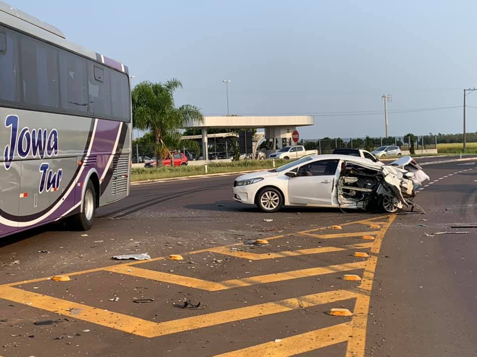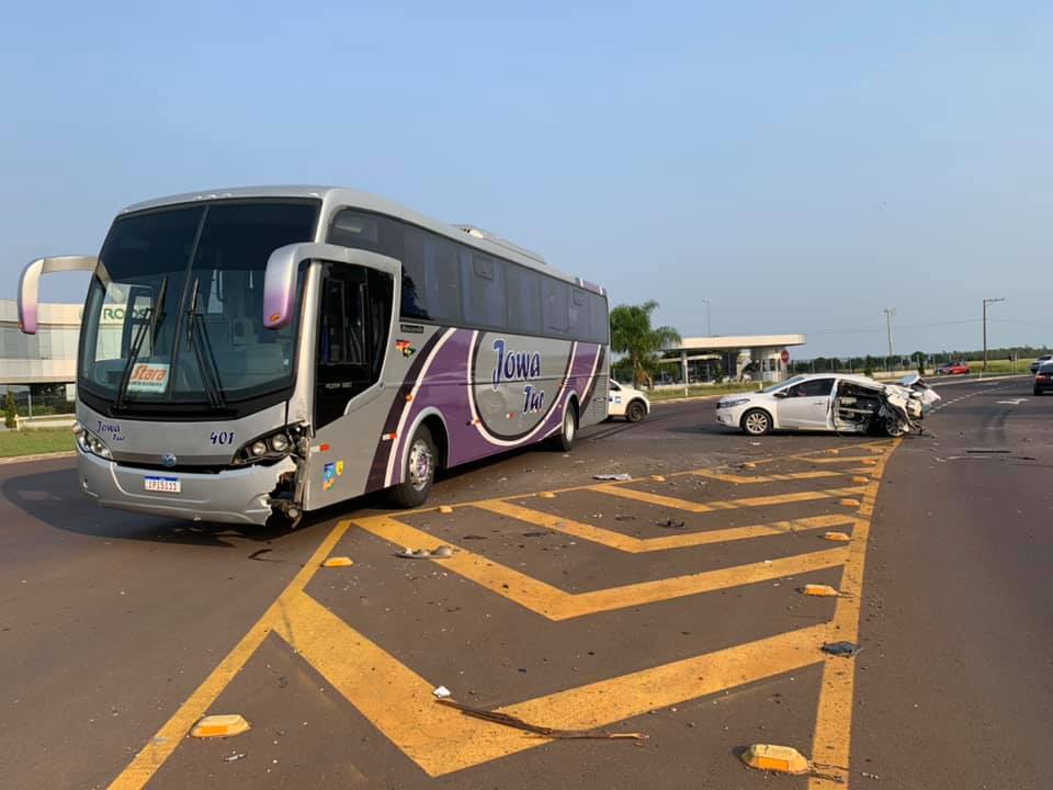 O acidente envolveu um ônibus e um veículo Kia Ceratto com placas de Passo Fundo.