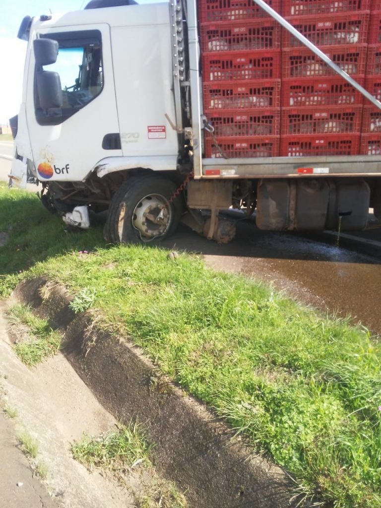 Segundo informações, a condutora de um Nissan Versa, com placas de Porto Alegre, acabou perdendo o controle, por motivos desconhecidos, e colidindo em um caminhão carregado de frangos. O automóvel ainda era tripulado por uma caroneira.