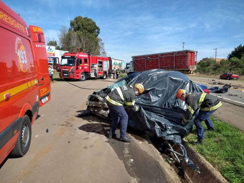No início da tarde desta quinta-feira (23), um acidente envolvendo carro e caminhão deixou uma pessoa morta e outra ferida na ERS-135, entre Passo Fundo e Coxilha.