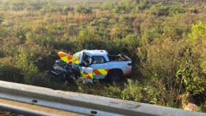 Os ocupantes da caminhonete precisaram ser desencarcerados das ferragens pelas equipes do Corpo de Bombeiros.