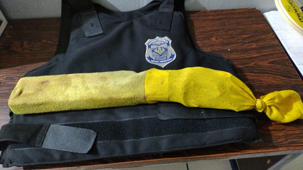 Os agentes conseguiram interceptar o referido pacote que ainda encontrava-se preso á janela da cela, o pacote continha um (01) tijolo grande de substância semelhante a maconha, dois (2) invólucros menores também contendo substância semelhante a maconha, uma (01) bucha de substância semelhante a cocaína, totalizando cerca de 1 quilo de drogas. Além disso, foram apreendidos ainda quatro (04) cabos USB e um (01) carregador de celular completo.