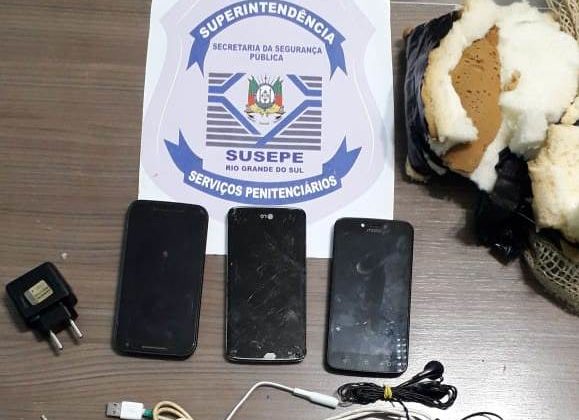 Nesta segunda-feira (09), por volta das 7h30, agentes penitenciários do Presídio Estadual de Espumoso visualizaram, pelas câmeras de monitoramento, objetos sendo arremessados para o pátio interno da casa prisional. Imediatamente, os agentes se deslocaram ao local e apreenderam três celulares, fones e carregadores.