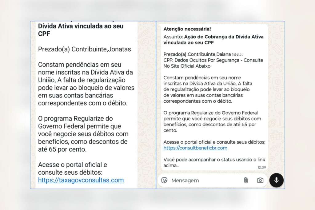 As vítimas recebem uma mensagem alegando que existem pendências vinculadas ao seu CPF e que, caso não sejam regularizadas, haverá o bloqueio de contas bancárias. Para dar veracidade, os golpistas utilizam a identidade visual do governo e citam programas reais, como o “Regularize”.