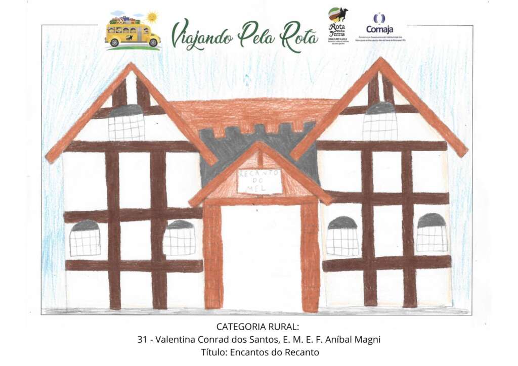 Após uma seleção criteriosa, três desenhos se destacaram: “Tratorzinho”, obra de Eduardo Durigon Rubin da E.E.E.M. Adão Seger, “Encantos do Recanto”, criado por Valentina Conrad dos Santos da E.M.E.F. Aníbal Magni, e “Biblioteca Municipal de Selbach”, magistralmente desenhada por Bernardo Luiz de Souza da E.E.E.F. Frei Anselmo.