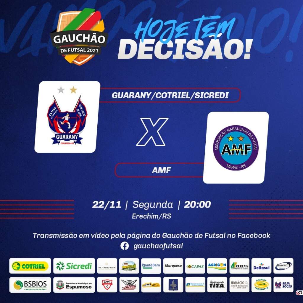 Guarany e AMF entram em quadra nesta segunda-feira, dia 22, às 20 horas, em quadra neutra, no Ginásio do CER Atlântico, no município de Erechim, para decidir quem irá para as quartas de final do Gauchão de Futsal Sicoob – Série A 2021.