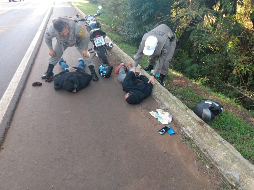Eles são de Cruz Alta, possuem 26 e 29 anos e já passaram pelo sistema prisional. A moto que eles utilizaram na ação também é produto de furto.
