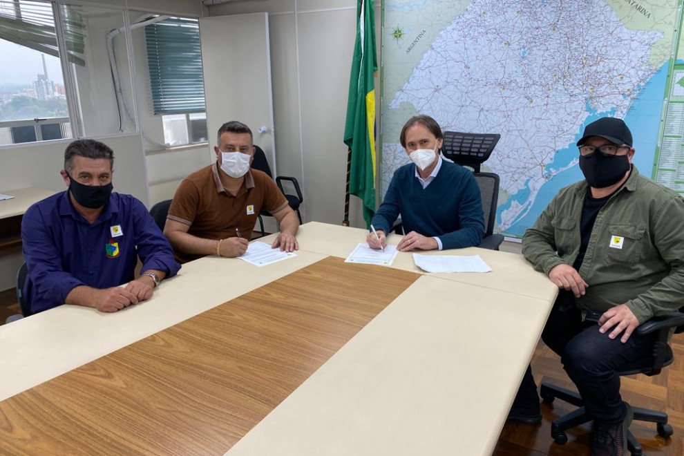 O Prefeito de Mormaço, Rodrigo Jacoby Trindade, deu mais um importante passo para a concretização da duplicação da ponte na VRS-854. Nessa terça-feira, 28/09, ele esteve em Porto Alegre, acompanhado do vereador Marcos Malaquias e do presidente do MDB Waner Silveira, onde, na presença do Secretário de Logística e Transportes do RS, Juvir Costella, realizou a assinatura do termo de cooperação técnica com o Daer.