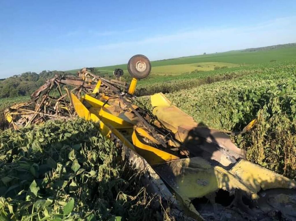Segundo informações, o piloto ao levantar vôo em um avião agrícola, perdeu o controle, vindo a capotar antes do término da pista.