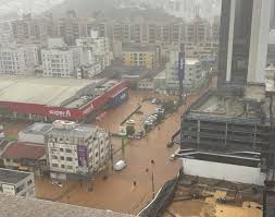 Fortes chuvas atingiram o Nordeste de Santa Catarina nesta quinta-feira (16), causando alagamentos em cidades costeiras como Balneário Camboriú, Camboriú, Itajaí e Navegantes. O fenômeno foi causado pela convergência de umidade do oceano e atmosfera aquecida.