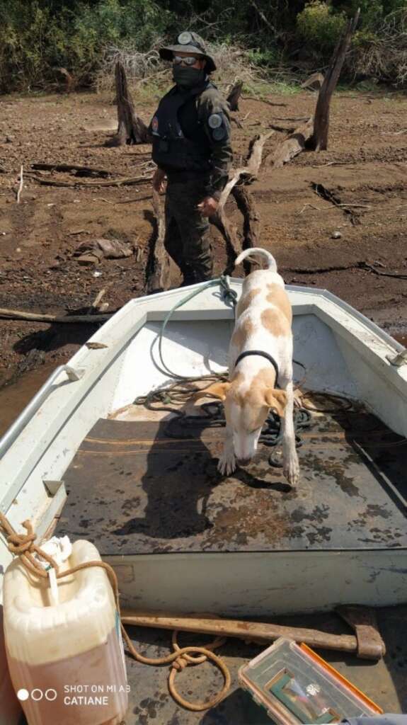 O dono dos cães informou aos PMs que, no domingo, atravessou o rio para pescar e um dos cães se perdeu, ficando preso na outra margem.
