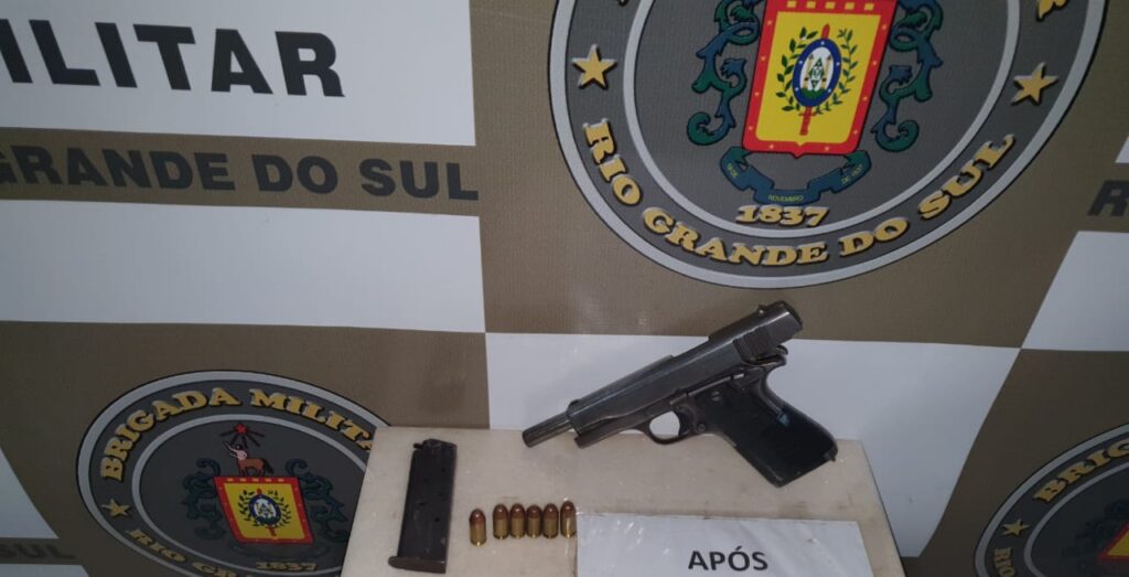 Na ação, que foi realizada na Avenida Duque de Caxias, foi apreendida uma pistola .45 municiada.