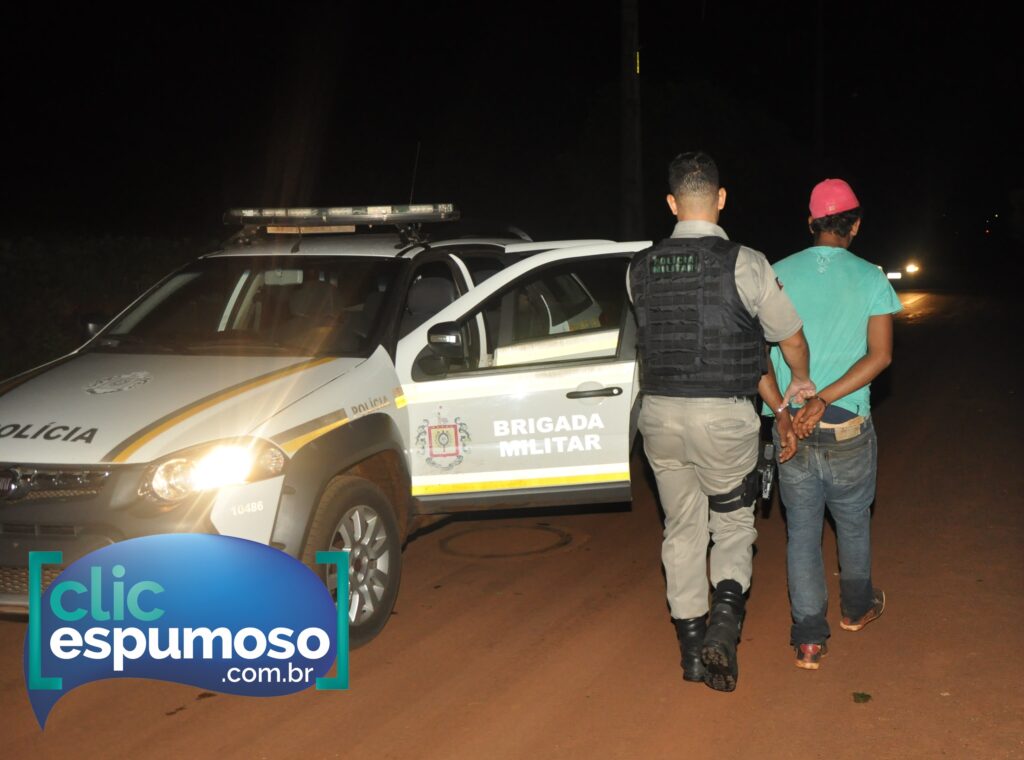A Brigada Militar de Espumoso, através do Sargento Fernando e dos Soldados Roberto e Severo, prendeu na noite deste domingo, 16, um jovem de 23 anos por roubo. Volmir Lima da Rosa foi reconhecido pela vítima. De acordo com as informações do zelador do Centro de Integração do Menor Espumosense (CIMES), o jovem chegou com um facão e pediu para que ele entregasse o dinheiro, assustado, o senhor entregou o valor de 18 reais que tinha na carteira e alguns cruzeiros.