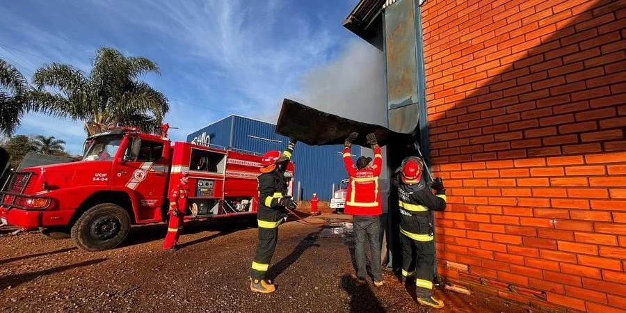 Uma das dificuldades enfrentadas é que o pavilhão foi danificado e corre riscos de ceder. Além disso, a erva-mate estava seca e armazenada em sacolas, o que facilita a propagação das chamas em caso de brasas que restam no local.