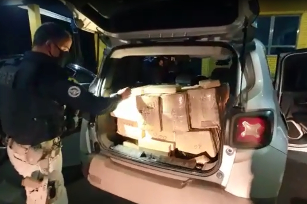 Após receberem informações do serviço de inteligência, os agentes federais abordaram dois veículos, uma Saveiro com placas de Sapucaia do Sul e um Renegade de Paraí. Ao realizarem a vistoria no interior do veículo, os PRFs encontraram aproximadamente meia tonelada de maconha.