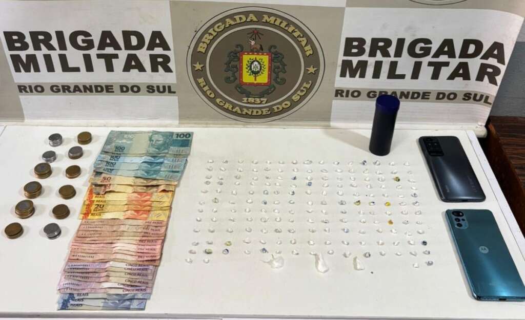 Em revista pessoal e busca no local, foram apreendidas 169 buchas de substância com características de crack, 3 buchas de substância semelhante à cocaína, além de R$ 863,75 em dinheiro fracionado, típico da comercialização de entorpecentes.