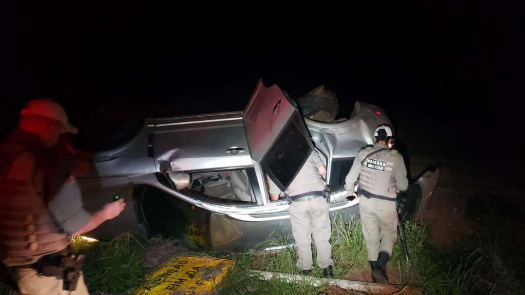 Durante a fuga, já no KM 6 da ERS 223 Km, em Victor Graeff o condutor da Captiva, perdeu o controle e capotou.