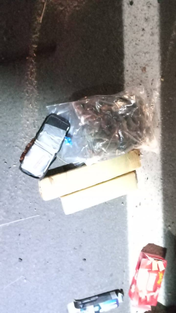 Ao realizar a revista veicular, os policiais encontraram dentro de uma mala 2 tabletes de maconha, pesando 1,700 Kg, um saco transparente com maconha fracionada pesando 780 gramas, 8 gramas de cocaína e R$ 713,00.