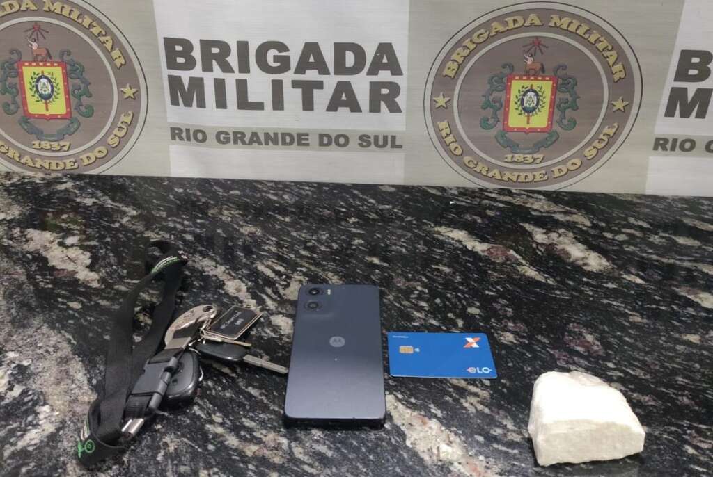 Em continuidade às diligências, foram apreendidos 103 gramas de cocaína, um telefone celular da marca Motorola, um veículo Peugeot, um cartão em nome de terceira pessoa e uma chave de motocicleta elétrica. O indivíduo relatou que havia adquirido o entorpecente no município de Passo Fundo e que faria a entrega na cidade de Ilópolis.