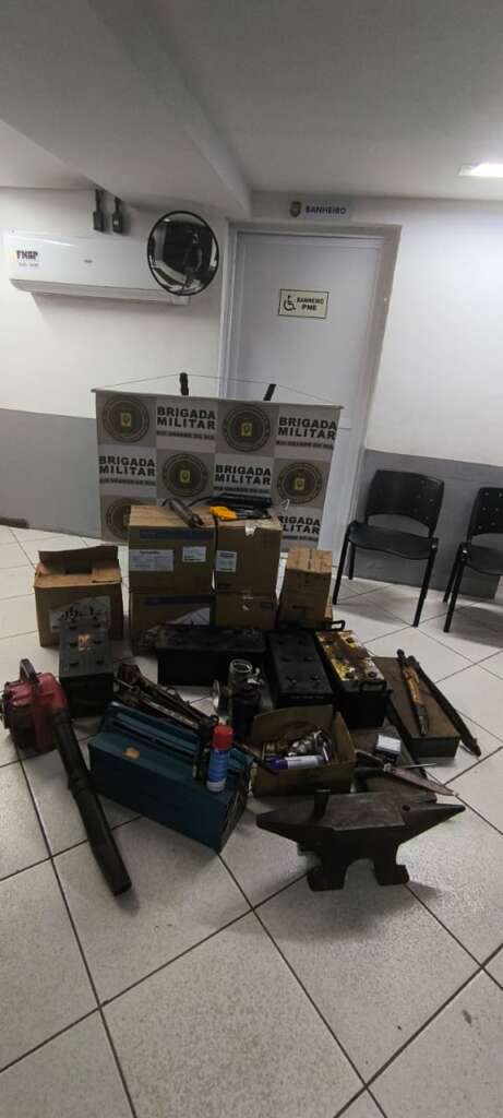 Na noite de segunda-feira (27/04), a Brigada Militar de Carazinho atendeu a uma ocorrência de furto em propriedade rural na localidade de Molha Pelego, interior do município. Após informações, as guarnições deslocaram-se até o local, onde realizaram contato com o proprietário, que relatou ter sido avisado por um vizinho sobre movimentações suspeitas na propriedade. No local, foi constatado o arrombamento de um galpão destinado ao armazenamento de maquinários, sendo verificada a subtração de diversos objetos, entre eles baterias de máquinas, um DVR de sistema de monitoramento, caixas de defensivos agrícolas e outros itens.