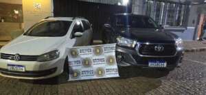 Durante a ação, os policiais localizaram uma caminhonete furtada com placas clonadas, apreenderam uma arma de fogo, munições, drogas e diversos equipamentos utilizados para a prática dos crimes.