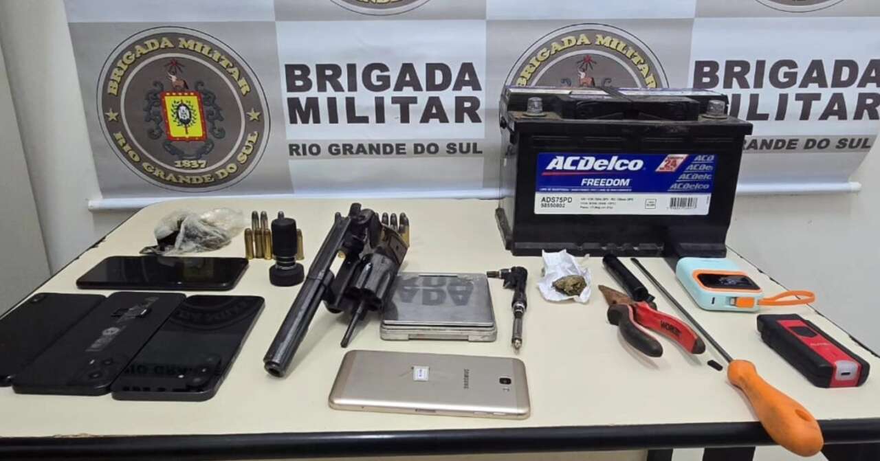 Durante a ação, os policiais localizaram uma caminhonete furtada que circulava com placas clonadas. No local, também foram apreendidos uma arma de fogo, munições, drogas e diversos equipamentos que, segundo a Brigada Militar, eram utilizados para a prática dos crimes.