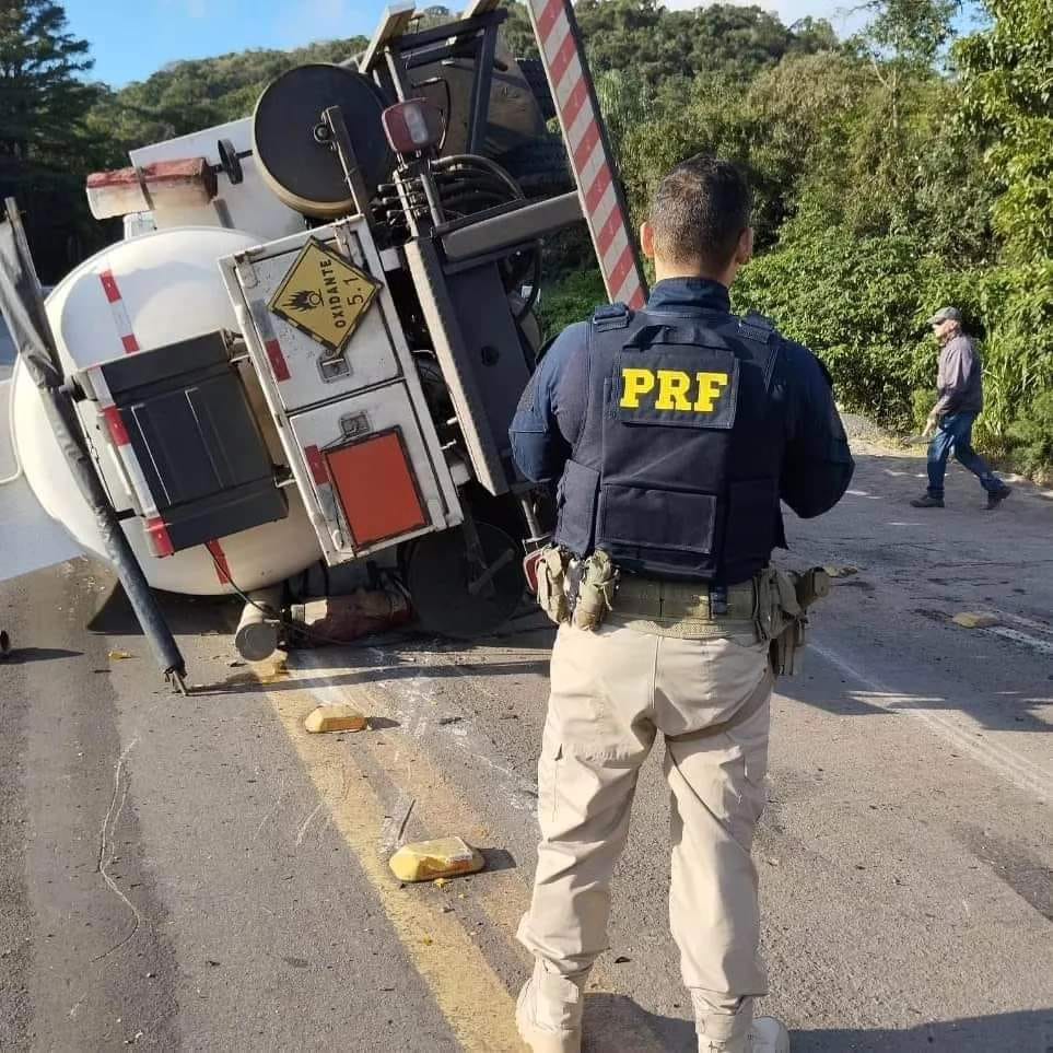 De acordo com informações da Polícia Rodoviária Federal (PRF), o veículo, um caminhão emplacado Siderópolis (SC), tombou entre os quilômetros 312 e 318 da rodovia, próximo ao Posto Montanha.