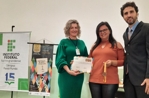 Na última sexta-feira, 04 de agosto, um momento de celebração e reconhecimento encheu de orgulho a comunidade de Campos Borges. A diretora da Escola Municipal de Ensino Fundamental Menino Deus, Elisabete Signor Pastório, e a secretária municipal de Educação e Cultura, Dioneia Pierezan, tiveram a honra de receber a medalha de bronze e o certificado de premiação da 17ª Olimpíada Brasileira de Matemática das Escolas Públicas (OBMEP). A solene cerimônia de premiação foi realizada nas instalações do IFSUL – Campus Passo Fundo.
