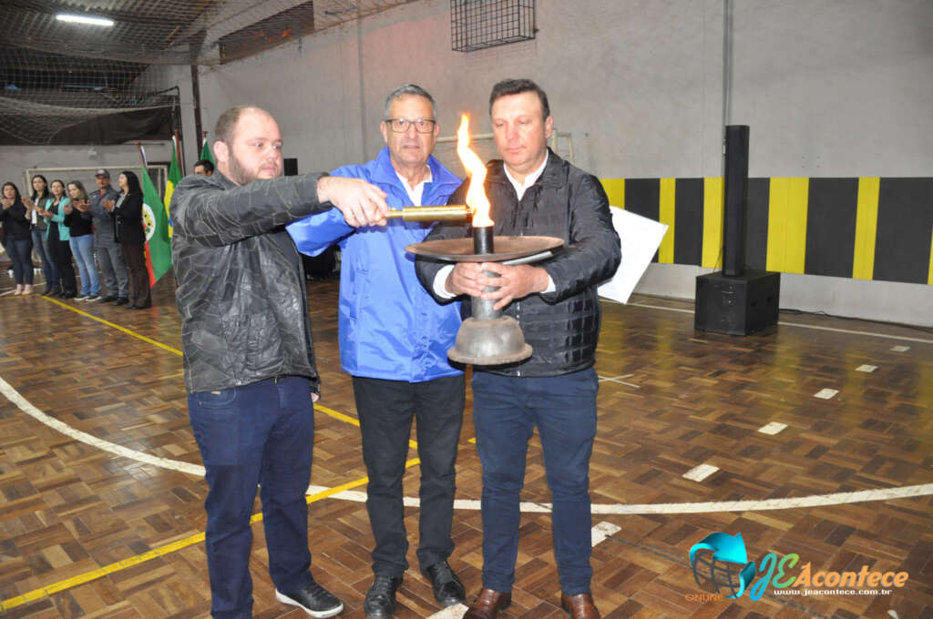 Na manhã desta terça-feira (19/08), o Ginásio da Escola Municipal de Ensino Fundamental Menino Deus em Campos Borges, foi palco da solenidade de recebimento da centelha do Fogo Simbólico da Pátria, parte da 88ª Corrida do Fogo Simbólico. Neste ano, o tema nacional é “Dom Pedro II”, o tema estadual é “Grêmio Náutico União” e o tema municipal destaca “Pátria que se constrói com respeito, união e esperança”.