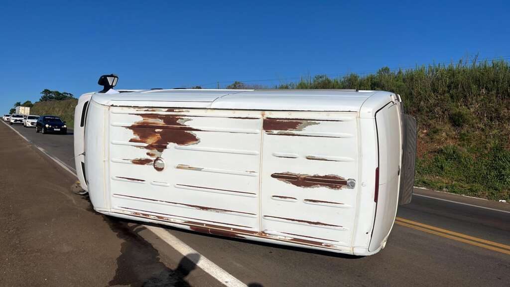 Conforme informações apuradas no local, o motorista realizava uma ultrapassagem em trecho permitido quando outro veículo à frente iniciou a mesma manobra, cortando a frente da van. Para evitar a colisão, o condutor desviou para o acostamento, perdeu o controle da direção, atingiu a canaleta de escoamento da rodovia e acabou tombando sobre a pista.