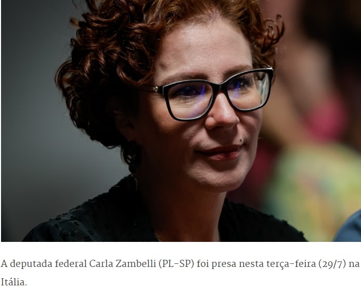 A deputada Carla Zambelli (PL-SP) foi presa na Itália nesta terça-feira (29), afirmou o Ministério da Justiça.