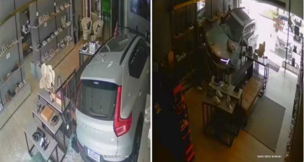 A proprietária do comércio relatou que estava nos fundos do estabelecimento quando ouviu um forte barulho. O veículo quebrou a fachada de vidro da loja, avançou sobre móveis e produtos da boutique. O automóvel ainda atingiu o balcão de atendimento antes de parar.