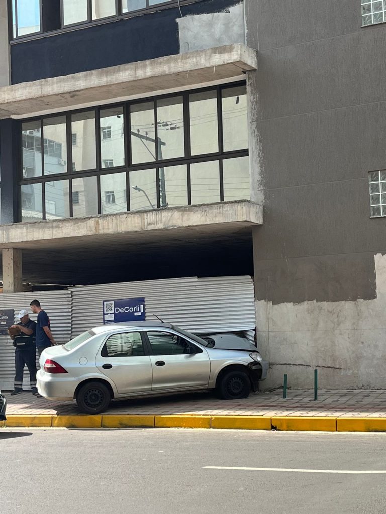 Um carro foi jogado contra a lateral do prédio em construção do Hospital de Clínicas de Passo Fundo, na Rua Uruguai, nesta manhã. O acidente ocorreu por volta das 09hs e envolveu um Nissan Sentra e um Gm Prisma. Conforme informações do local, o Sentra teria colidido com o Prisma e este, após a batida, foi jogado contra a parede do edifício em obras.