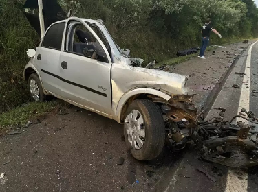 Um carro se partiu ao meio em colisão frontal com um caminhão na madrugada deste sábado, 4, e o motorista morreu no local. O acidente ocorreu na ERS-135, entre Sertão e Getúlio Vargas-RS. A vítima era um homem de 40 anos.
