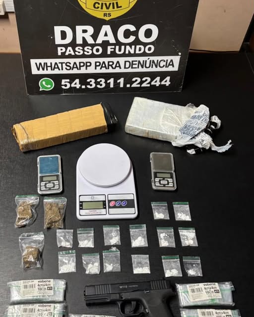 Na noite da quinta-feira (22), a Polícia Civil, por meio da DRACO de Passo Fundo e sob coordenação do delegado Venicios Demartini, prendeu em flagrante um casal pelos crimes de tráfico de entorpecentes e associação para o tráfico.