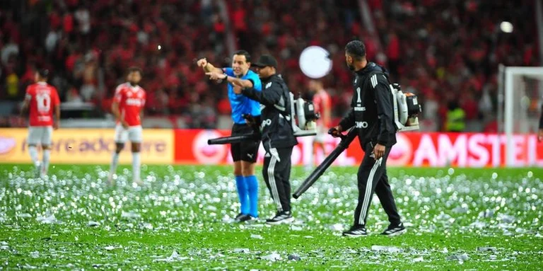 A partida foi retardada em 21 minutos e só começou quando boa parte do material foi recolhido. A falha será relatada em súmula e certamente deverá resultar em uma punição ao Inter, provavelmente na forma de multa.