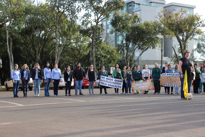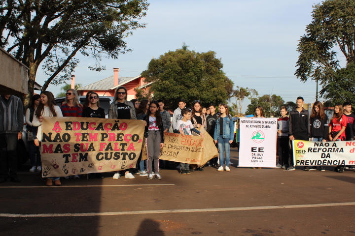 Professores, agricultores, alunos e representantes de sindicatos participam na manhã desta sexta-feira, 14, de um ato público em defesa da educação de qualidade, previdência social pública e universal, crédito subsidiado para agricultura familiar e em defesa dos municípios.